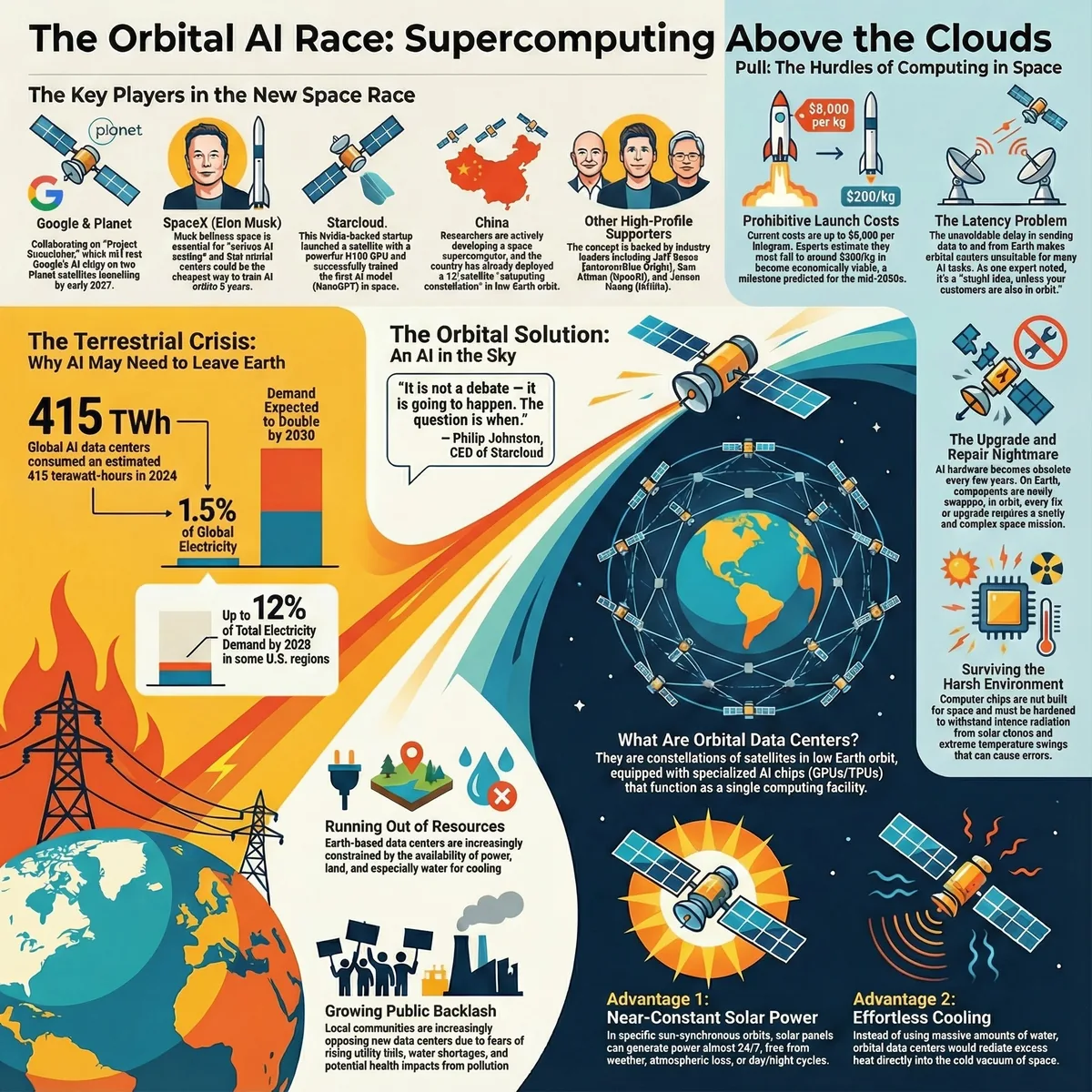 The push toward orbit is a direct response to the severe and growing constraints of building and operating massive computing facilities on the ground. These terrestrial data centers are placing an unsustainable burden on our planet's resources.