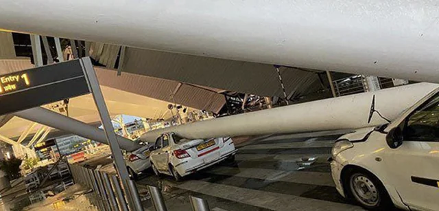 Rain lashed the city relentlessly. Water pooled on the terminal's roof, overwhelming its structure. Without warning, a section of the roof crumbled. Passengers and airport staff found themselves in peril. Panic ensued as people scrambled for safety.