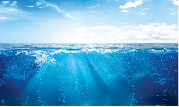 Deep dive into the open waters, where nothing but water and natural air bubbles can be seen for miles.