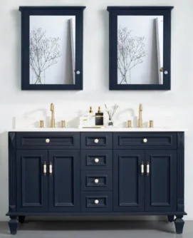 Bathroom cabinet countertops wear out quickly. Therefore, we must choose a type of table that is scuff-resistant and has a hard textured surface. At present, the more common bathroom countertop materials are microcrystalline stone, jade, artificial quartz stone, etc. Among them, quartz stone is an ideal countertop material because it has several advantages: high-temperature resistance, no deformation, no surface warping, no explosion, and anti-fouling.