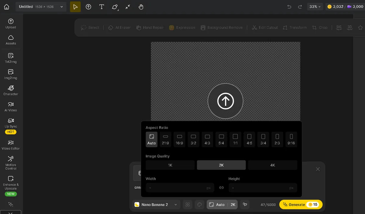 Adjust aspect ratio (for specific platform) and choose the image quality from 1k to 4k