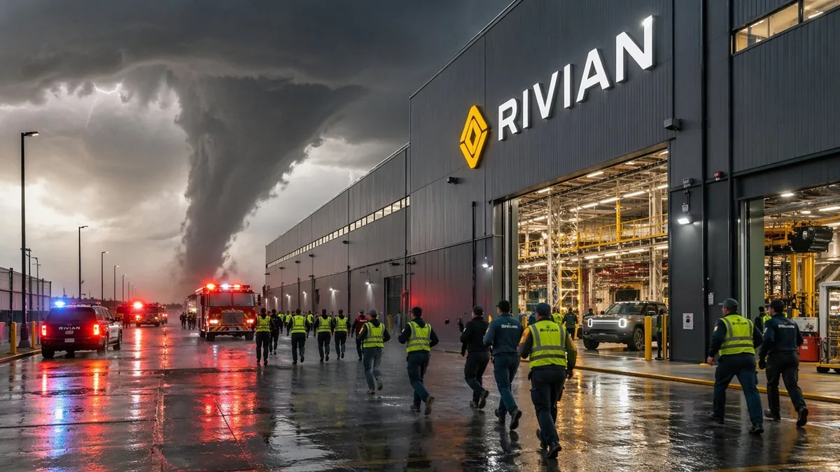 A tornado struck the area near Rivian's Normal, Illinois manufacturing facility, forcing an emergency evacuation and halting production at a critical moment for the electric vehicle maker — just weeks before the company's much-anticipated R2 SUV is scheduled to begin customer deliveries. The disruption adds operational risk to a launch that Rivian's investors and management have been counting on to drive the company's path to profitability.