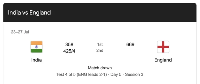 - India's heroic resistance forced a deserved draw, leaving the series at 2-1 in England's favor heading into the conclusive 5th Test.