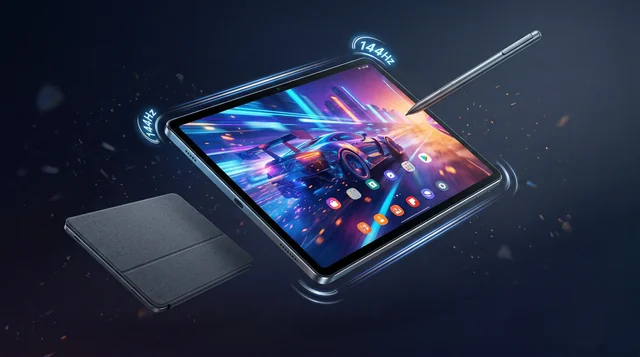 The 11.2-inch IPS display has a 3.2K resolution (3200 x 2136), a 144Hz adaptive refresh rate, 800 nits peak brightness, 12-bit color depth, and DCI-P3 color gamut support. It also carries TÜV Rheinland certifications for low blue light, circadian-friendly viewing, and flicker-free operation. The 3:2 aspect ratio is better suited for productivity tasks like document editing and presentations than the typical 16:10 ratio found on entertainment-focused tablets.